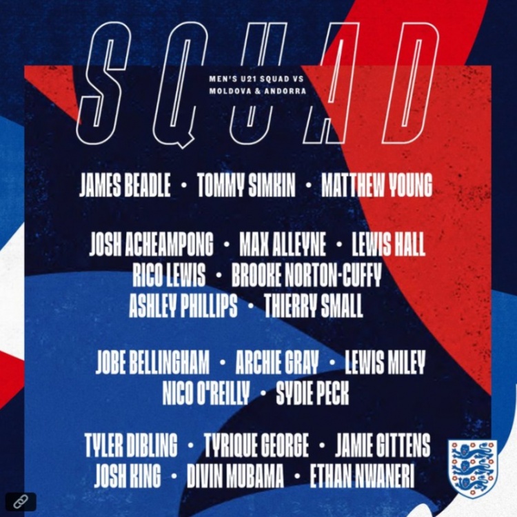 2025-10-04 00:11:43英格兰U21队名单:小贝林厄姆、恩瓦内里、吉滕斯、刘易斯在列